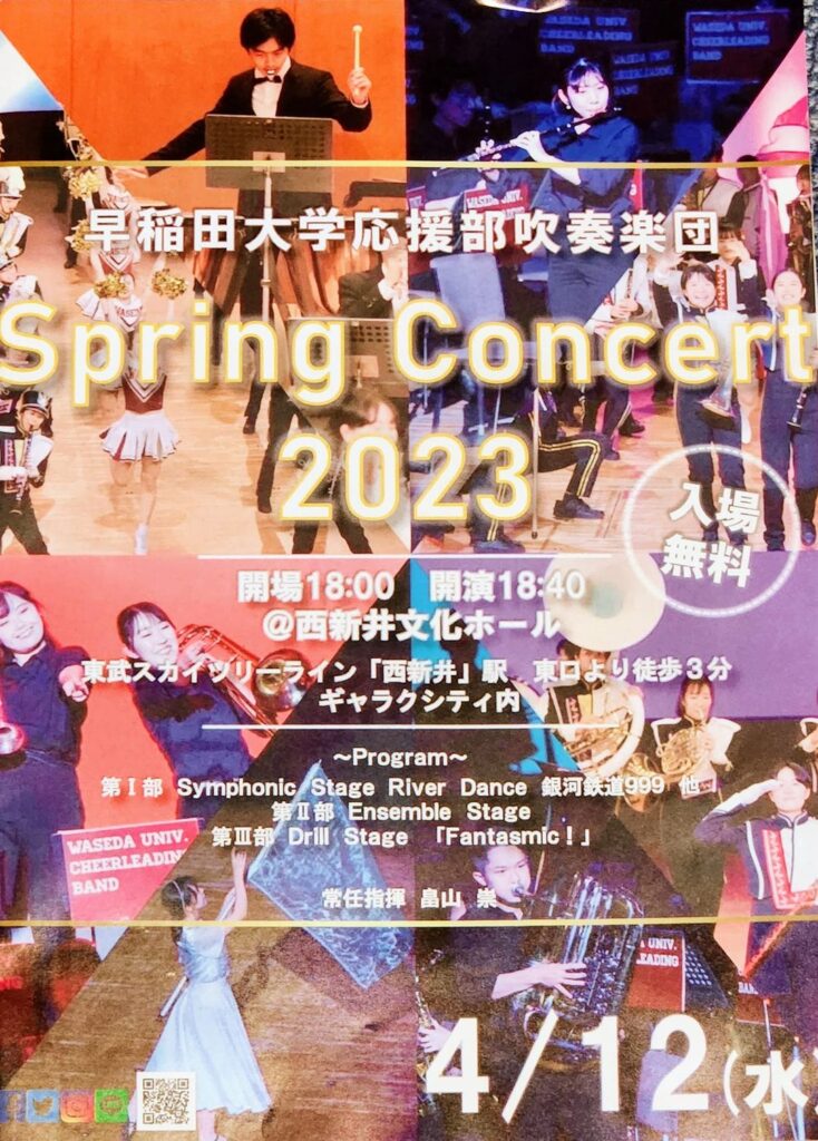 早稲田大学応援部吹奏楽団のSpring Concert2023に行って来ました。 素晴らしい演奏でした。今週末から東京六大学野球の春リーグ戦が始まります。応援の方も 頑張って欲しいですね‼️
